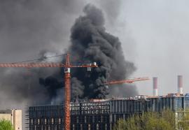 Столб чёрного дыма высотой с небоскрёб. Пожар в элитном московском ЖК попал на видео
