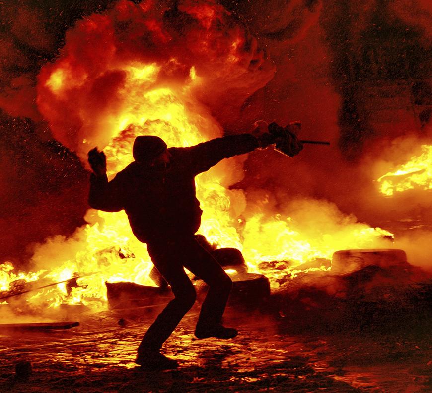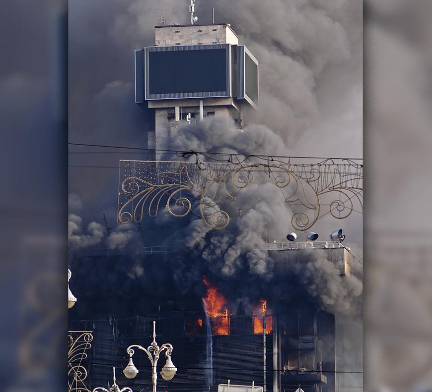 Пылающий Дом профсоюзов. 19 февраля 2014 года.
