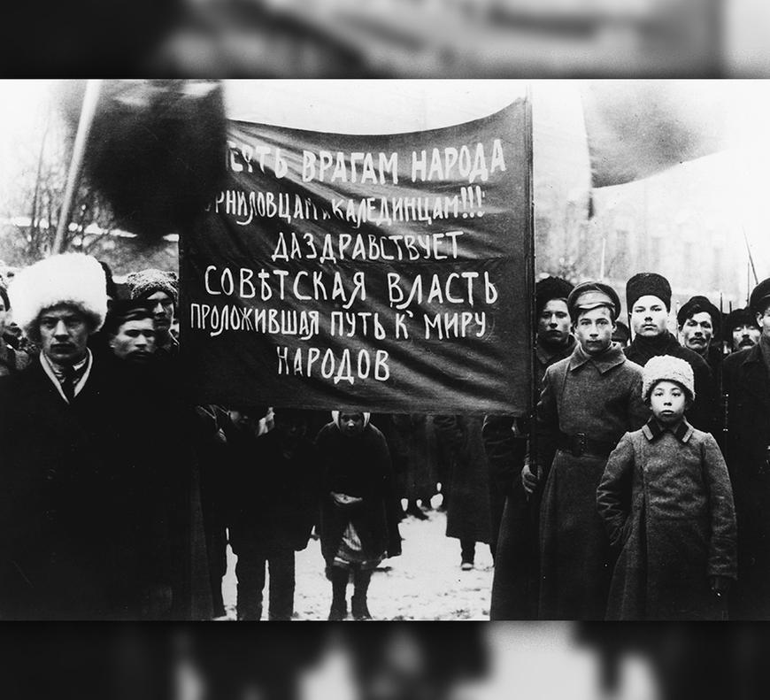 Октябрьская революция. Демонстрация против генералов Лавра Григорьевича Корнилова и Алексея Михайловича Каледина (руководителей неудавшегося переворота), октябрь 1917 года.