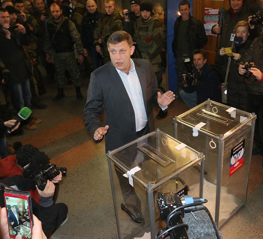 После ухода в отставку премьера ДНР Александра Бородая на его место практически единогласно избрали Захарченко. Ещё до конца 2014 года он занял другую руководящую должность в непризнанной на тот момент республике — стал главой ДНР, выиграв выборы. Однако результаты этого голосования признала только Россия.