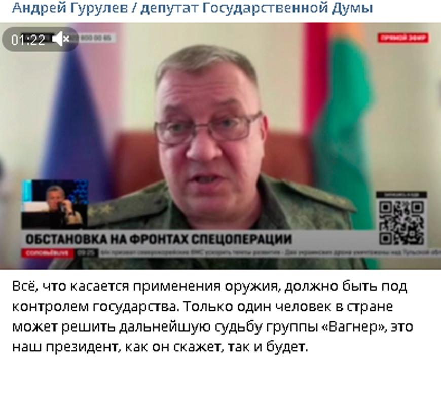 После мятежа ЧВК «Вагнер» в июне 2023 года Гурулёв призвал лидеров организации Евгения Пригожина и Дмитрия Уткина покончить жизнь самоубийством. И добавил: «Я жёстко убеждён в том, что предателей в военное время нужно уничтожать».