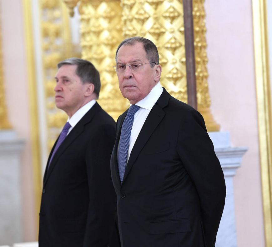 Министр иностранных дел Сергей Лавров и помощник президента Юрий Ушаков на церемонии вручения верительных грамот
