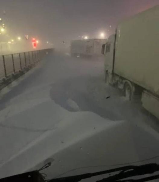 Многие автомобилисты продолжают стоять в пробке уже больше 20 часов. Водители фур пускают к себе погреться владельцев легковушек, а жители окрестностей зовут в гости переночевать.