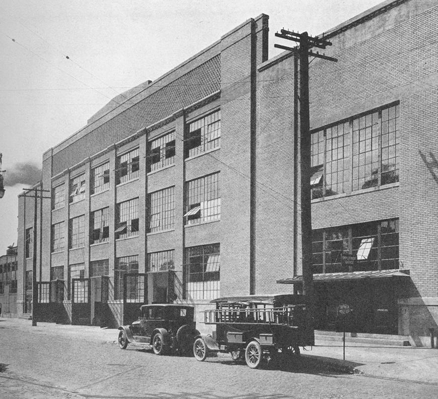 Внешний вид здания печи и мельницы, завод West End, Fisher Body Company, Детройт, Мичиган, 1923 год. Fisher Body была производителем автомобильных кузовов, ставшим подразделением General Motors в 1926 году
