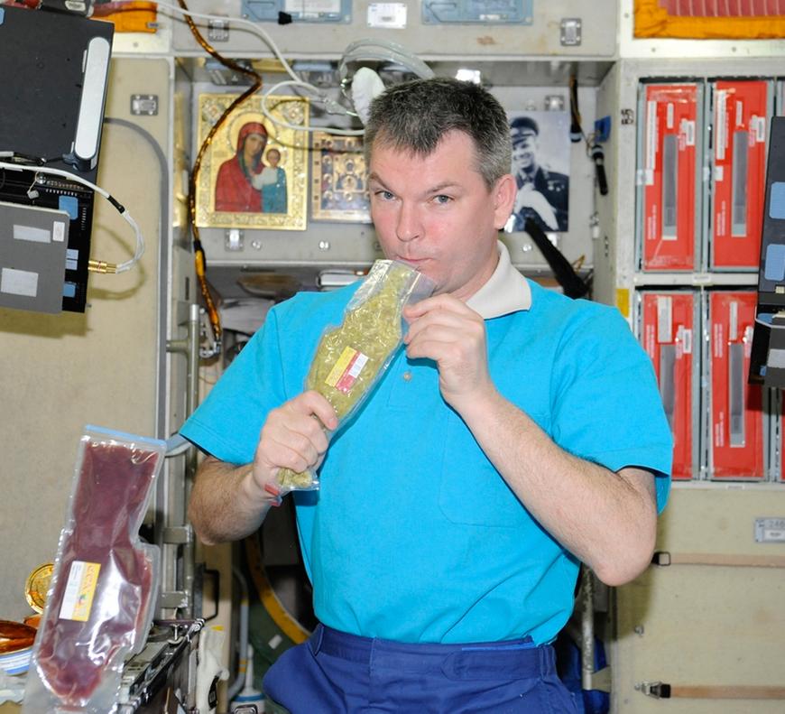 Космонавты едят практически то же самое, что и люди на Земле. Часто еду не разливают по тюбикам, а консервируют или сублимируют. В получившиеся брикеты потом добавляют кипяток. Супы пьют через соломинку, а второе едят ложками, прямо как на Земле.