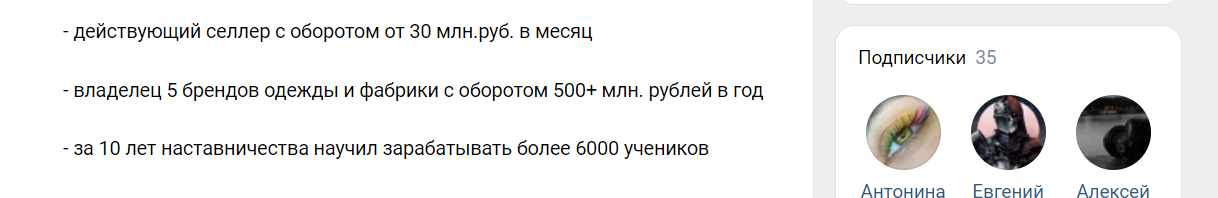 Попадаются драматичные (человек пришёл с долгом в 18 млн рублей и разрушенными надеждами, а ещё во время обучения вышел на доход по продажам на маркетплейсах в 27 млн рублей за 1 месяц, якобы работая с «Садоводом»).