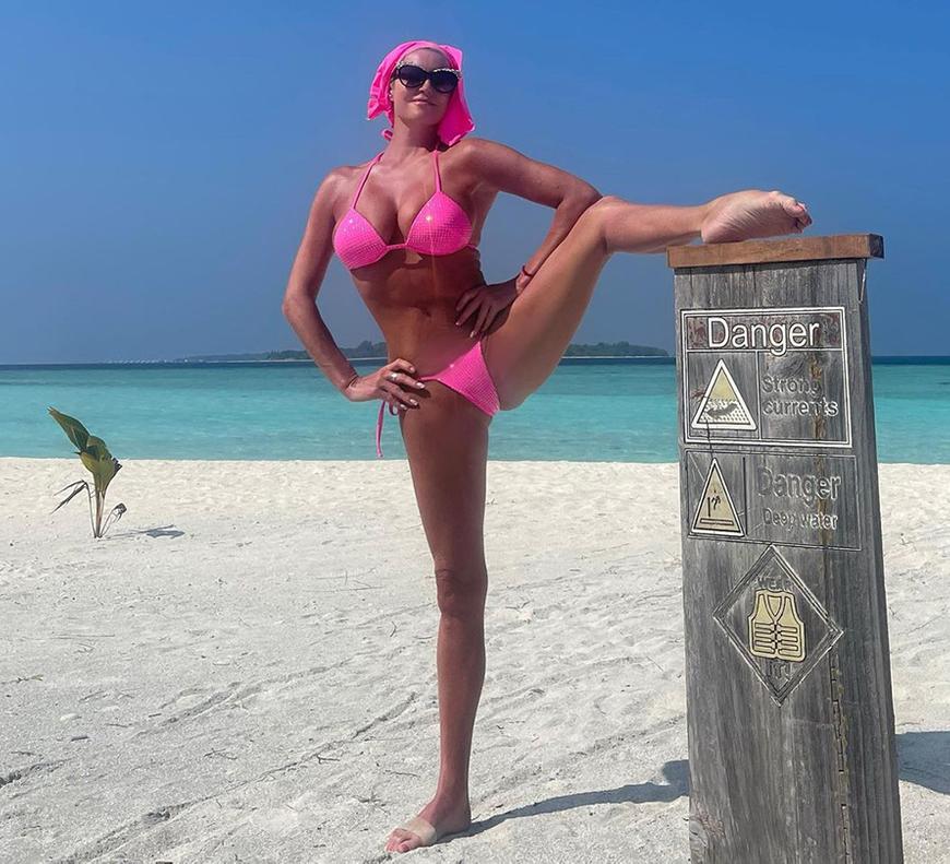 Анастасия Волочкова то и дело радует поклонников в социальных сетях пикантными фото. Балерина не только демонстрирует поперечные шпагаты в мини-бикини, но и часто снимается топлес. Интимные места звезда обычно прикрывает лишь мальдивским песочком или банными вениками.