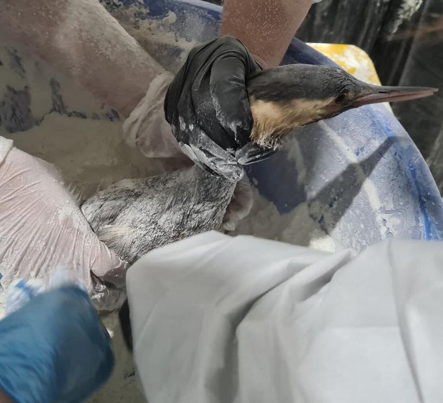 Добровольцы очищают берег, отмывают пострадавших птиц и животных. Также они работают в пунктах обогрева и питания и обследуют местность, чтобы выявить новые загрязнённые участки.