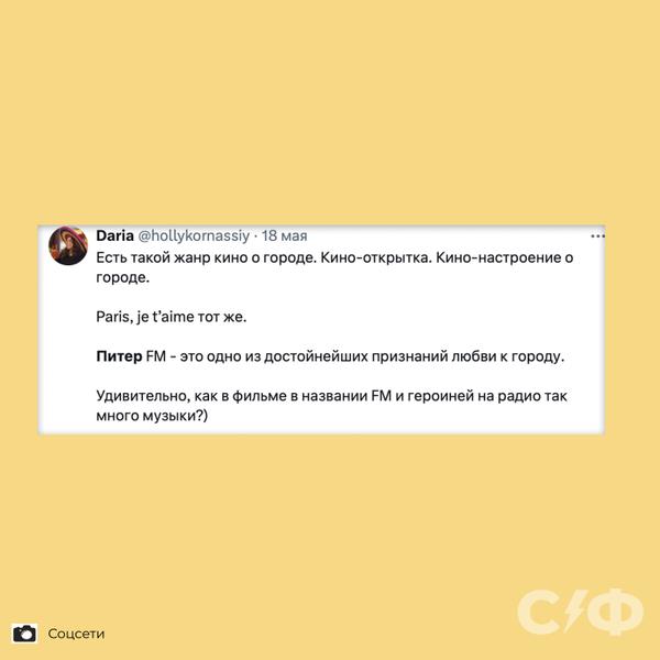Может быть, дело в «лёгкости», которая ощущается при просмотре. Зрители часто отмечают, что «Питер FM» поднимает им настроение и дарит надежду.
