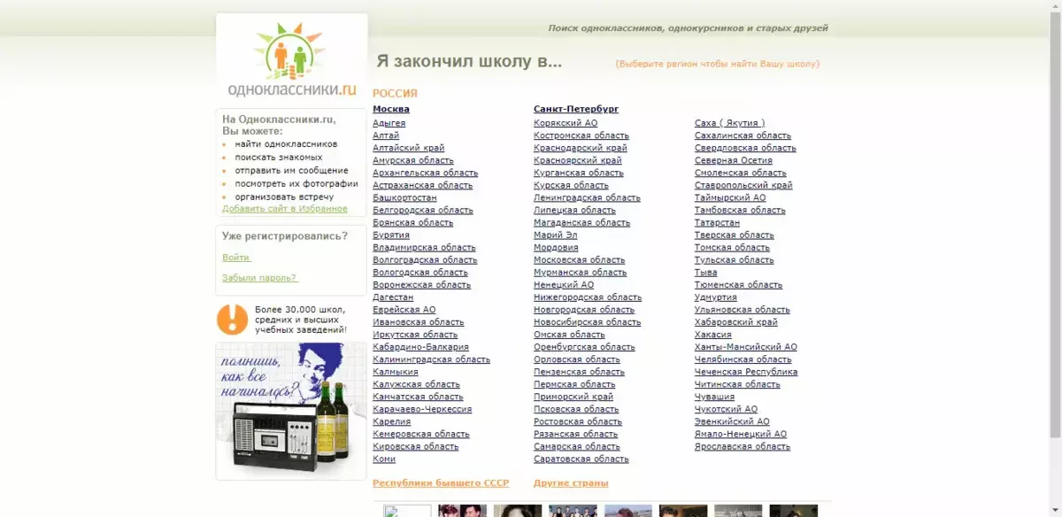 При регистрации пользователя просили выбрать страну и город проживания, а также указать номер учебного заведения — чтобы было проще найти школьных друзей.
