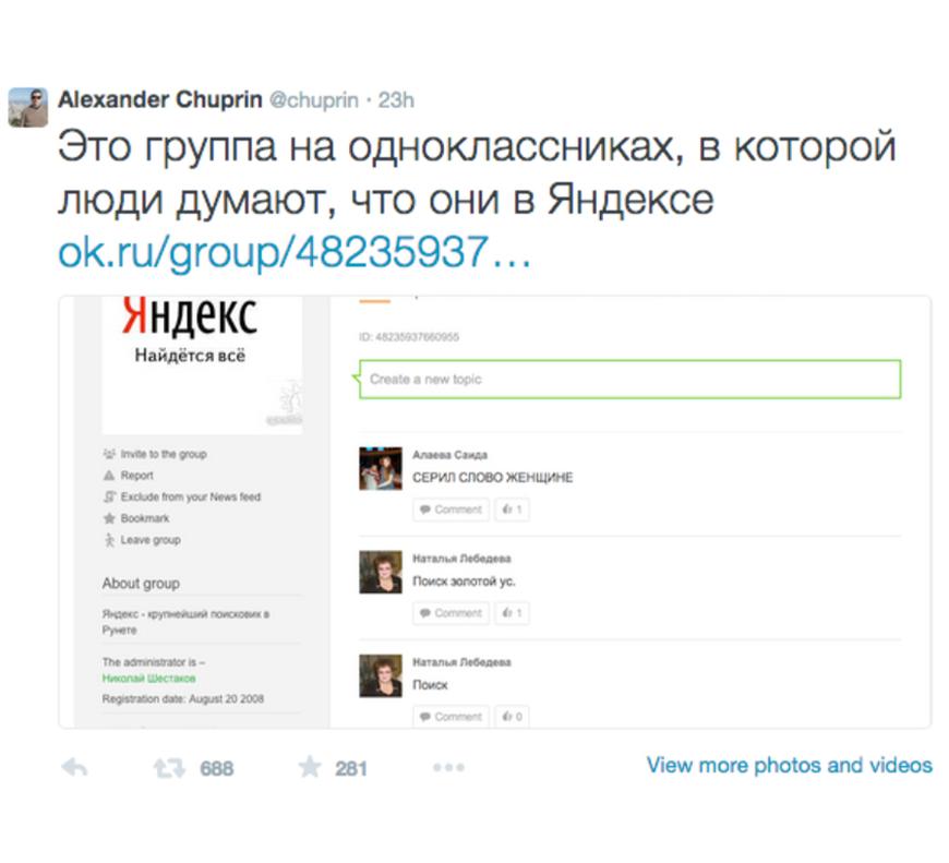 Однажды пользователи «Одноклассников» перепутали группу «Яндекса» с поисковой системой и на протяжении несколько лет оставляют поисковые запросы в заброшенной группе.