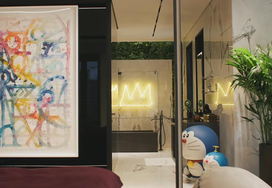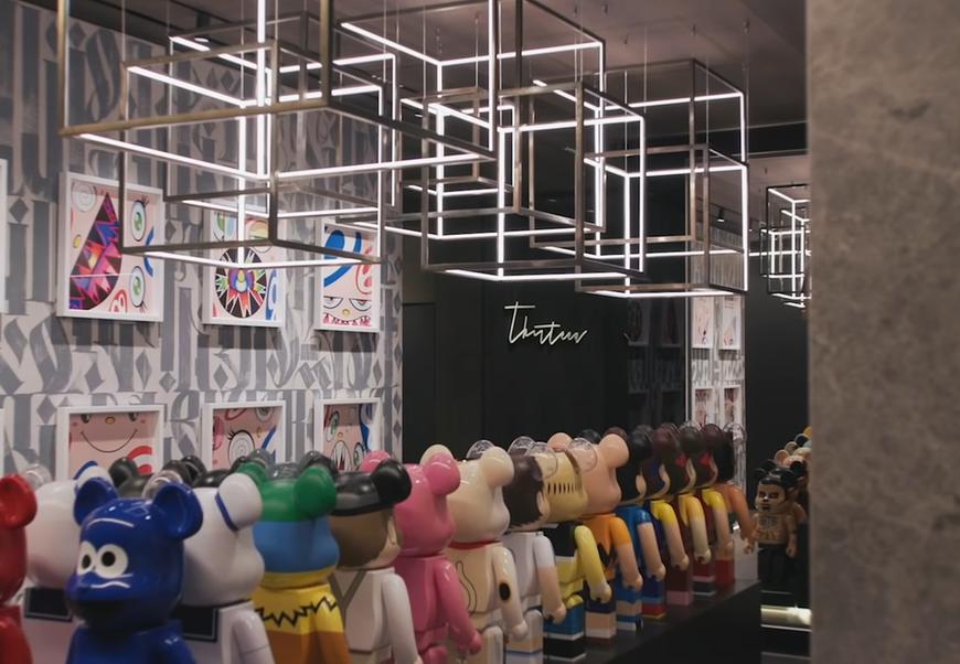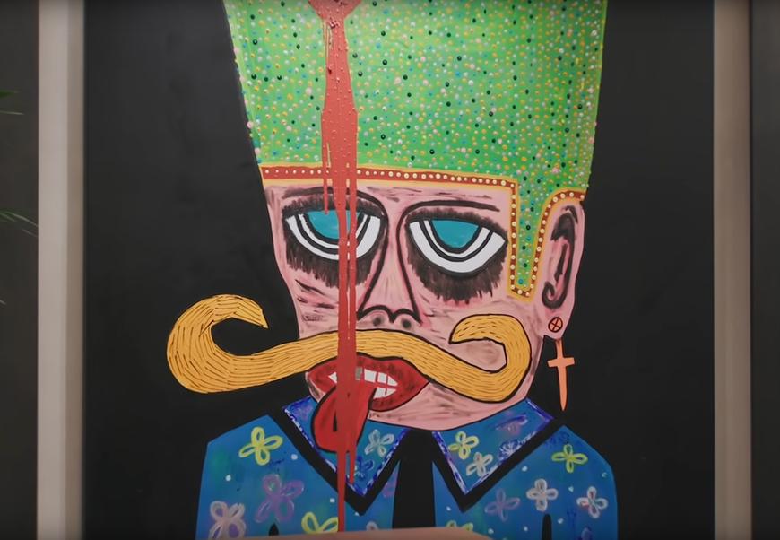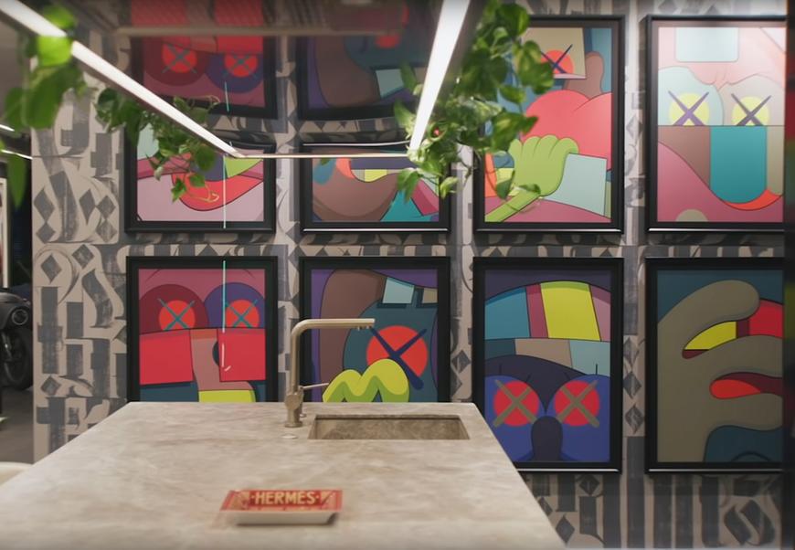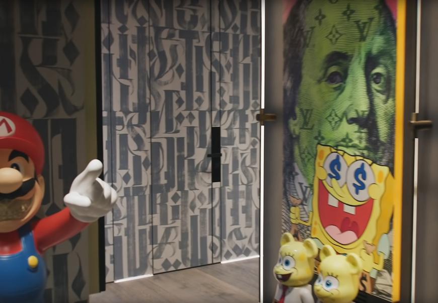 Квартира артиста напоминает музей современного искусства: на подиумах — скульптуры KAWS (американского скульптора Брайана Доннелли) и Bearbrick (дизайнерские игрушки, разработанные японской компанией MediCom Toy Incorporated), а на стенах — работы Такаси Мураками, Тимми Сникса и других известных художников. Некоторые из игрушек Bearbrick стоят дороже 1 млн рублей. Скульптуры KAWS тоже доступны не каждому — цена одной коллекционной фигурки может доходить до $26 481 (1,9 млн рублей). Полотна Такаси Мураками выставлены на Ebay за $9 800 (735 000 рублей).